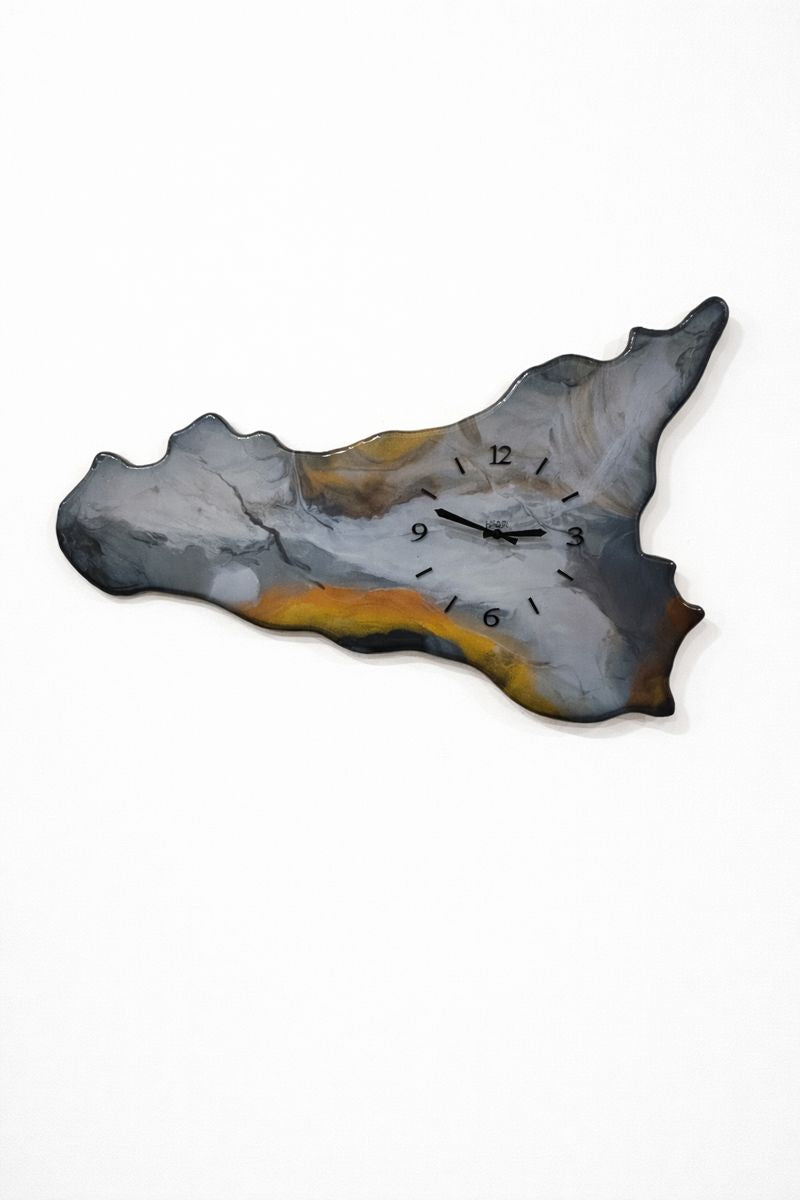 L'orologio da parete in resina Sicilia è uno pezzo d'arte splendido realizzato in resina epossidica su legno MDF.