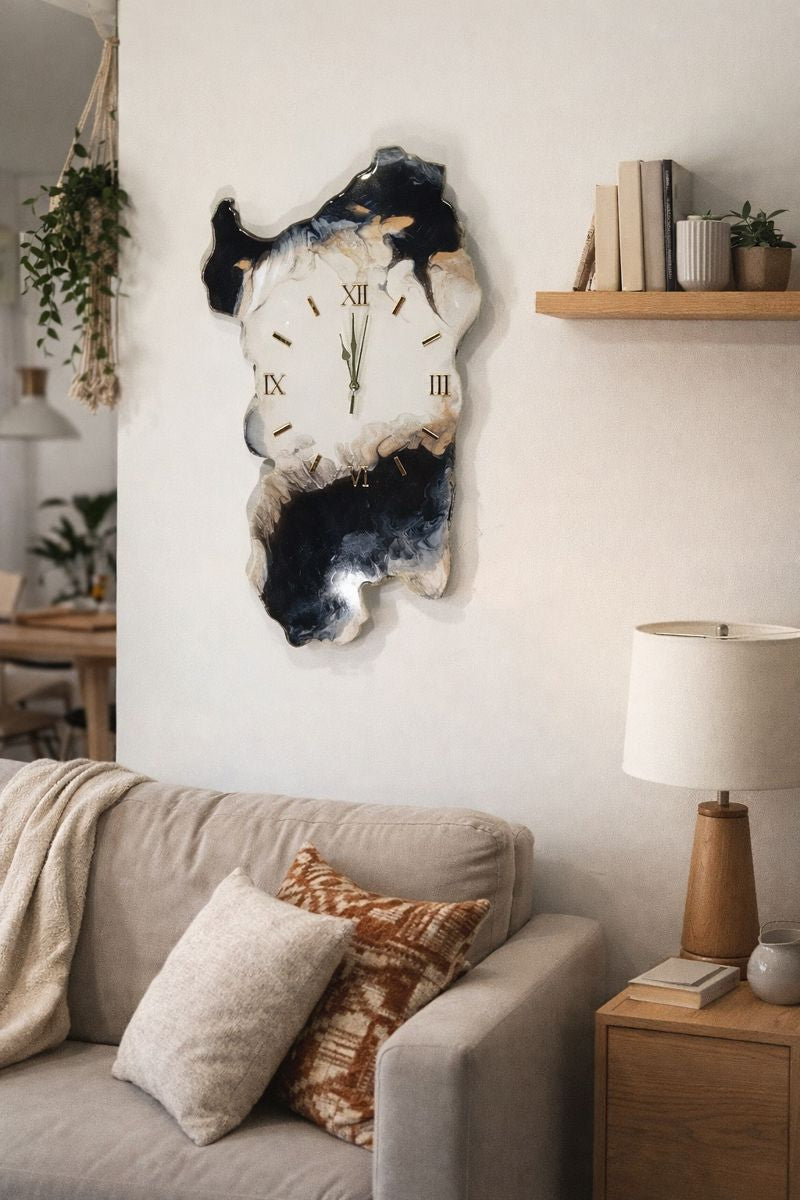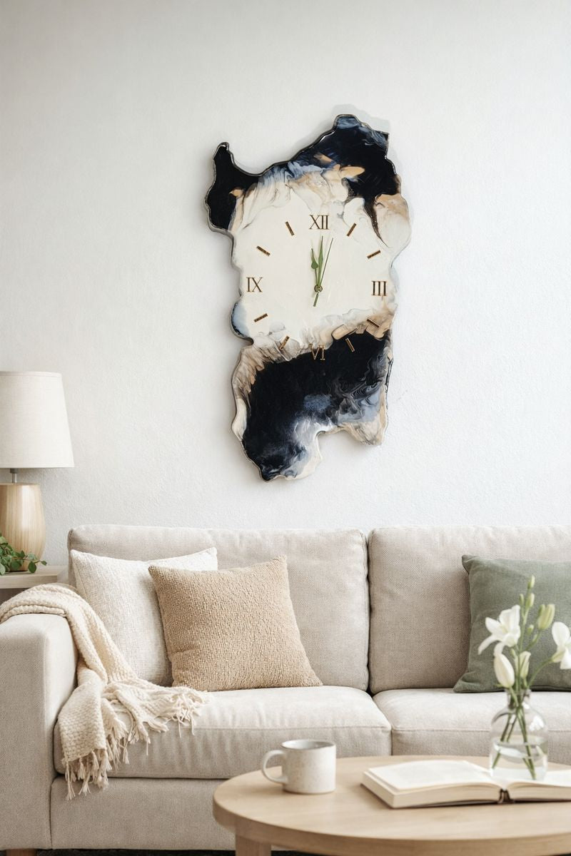 L'orologio da parete in resina Sardegna è uno pezzo d'arte splendido realizzato in resina epossidica su legno MDF.