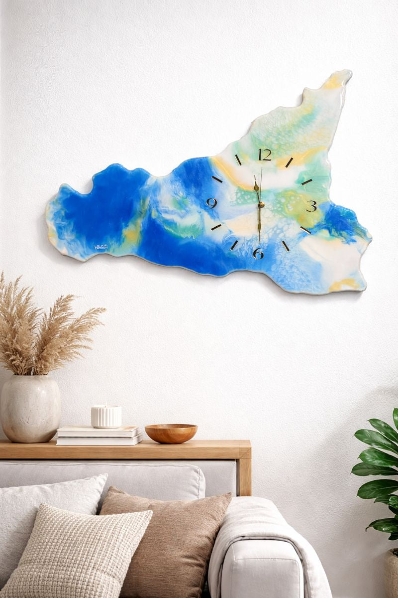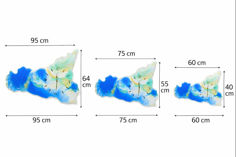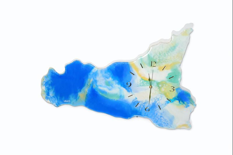 L'orologio da parete in resina Sicilia è uno splendido pezzo d'arte realizzato in resina epossidica su legno MDF.